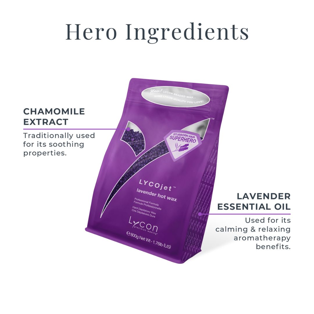 Featuring the same great LYCON quality and performance, PLUS the extra convenience of the easy-to-pour beaded wax form. LYCOjet Lavender Beaded Hot Wax delivers both therapist and client a premium waxing experience.