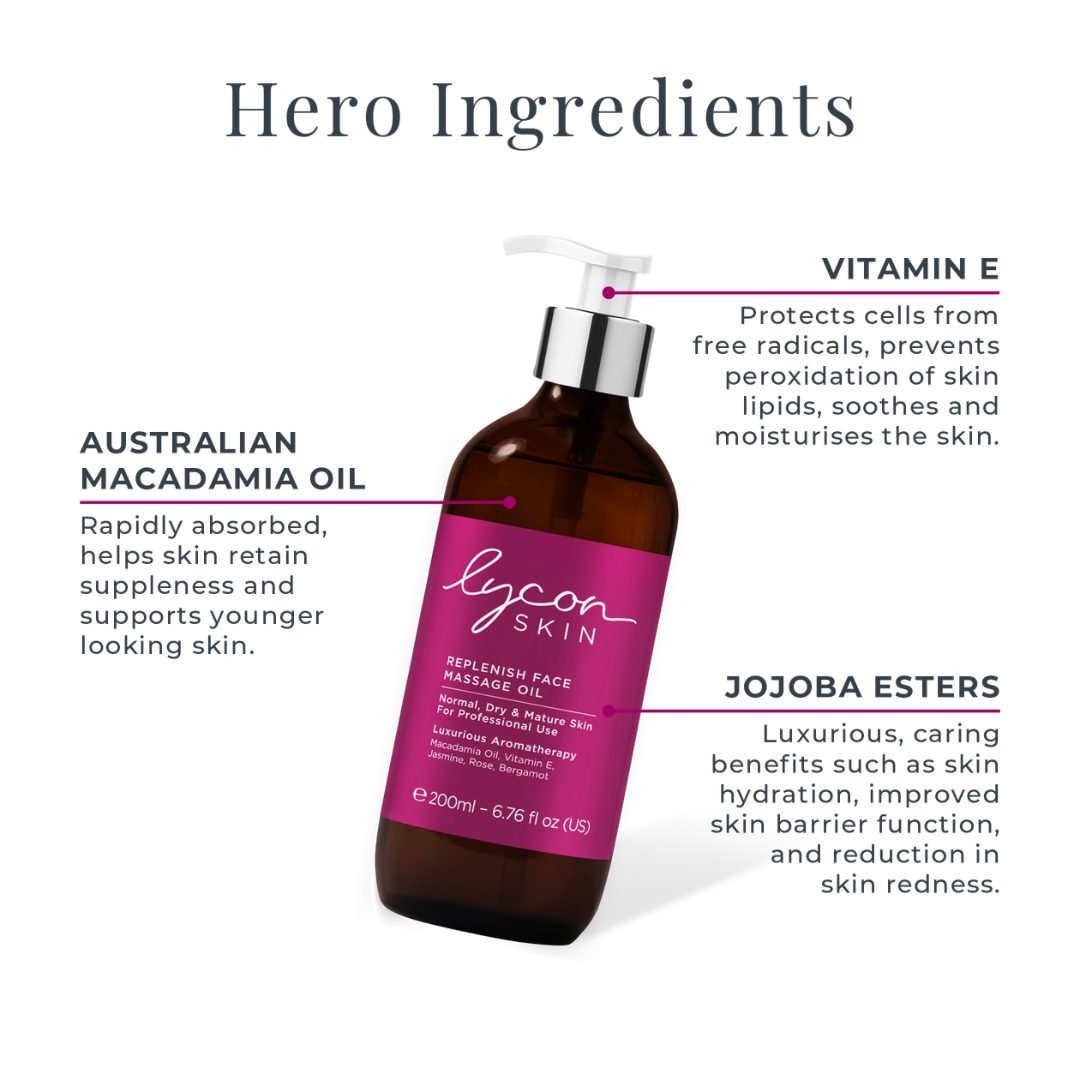 A rejuvenating and deeply hydrating aromatherapy massage oil with the replenishing properties of macadamia lipids and the antioxidant power of Vitamin E to help minimise the appearance of fine lines and wrinkles. Ideal for face, neck and décolletage massage.