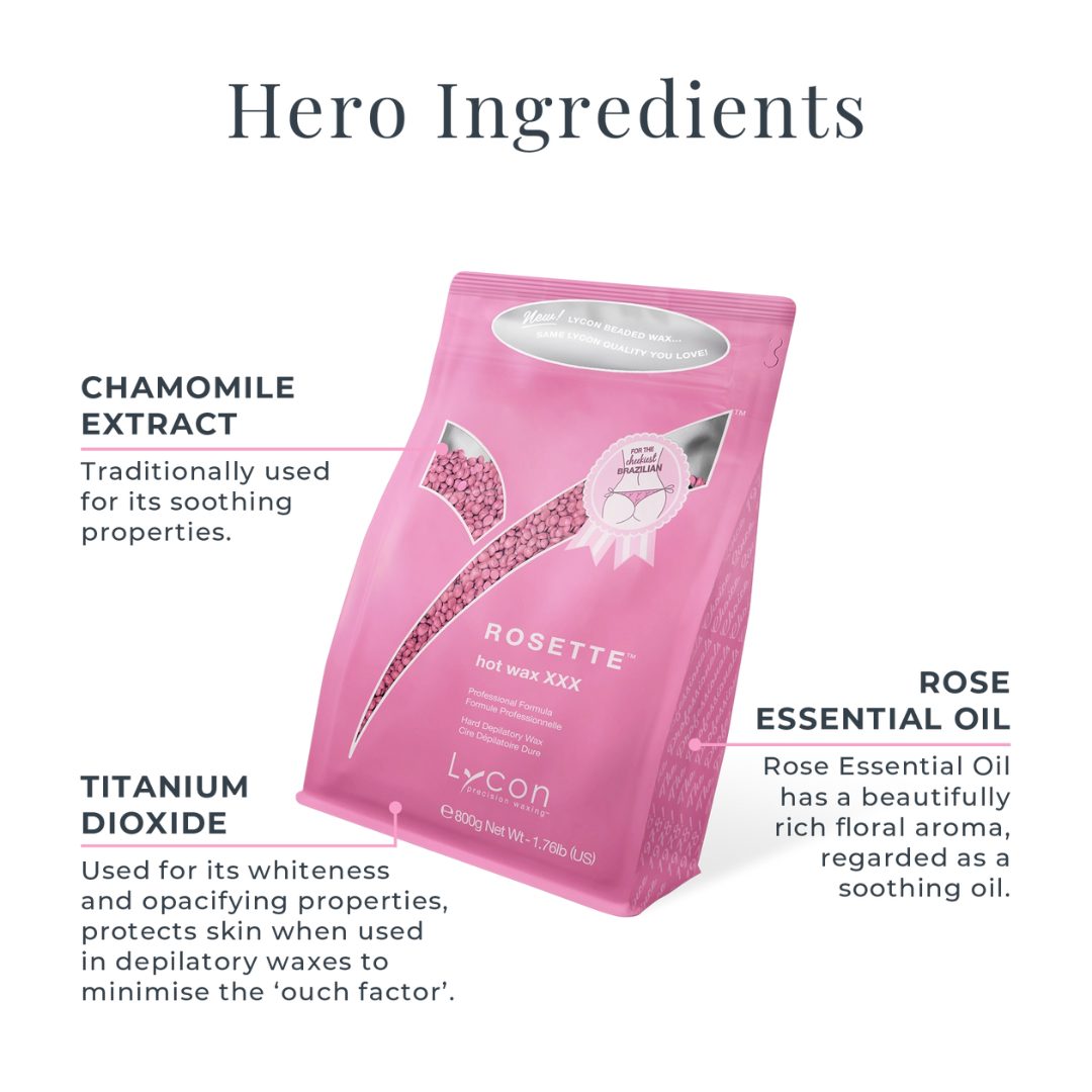 Featuring the same great LYCON quality and performance, PLUS the extra convenience of the easy-to-pour beaded wax form. Rosette Beaded Hot Wax delivers both therapist and client a premium waxing experience.
